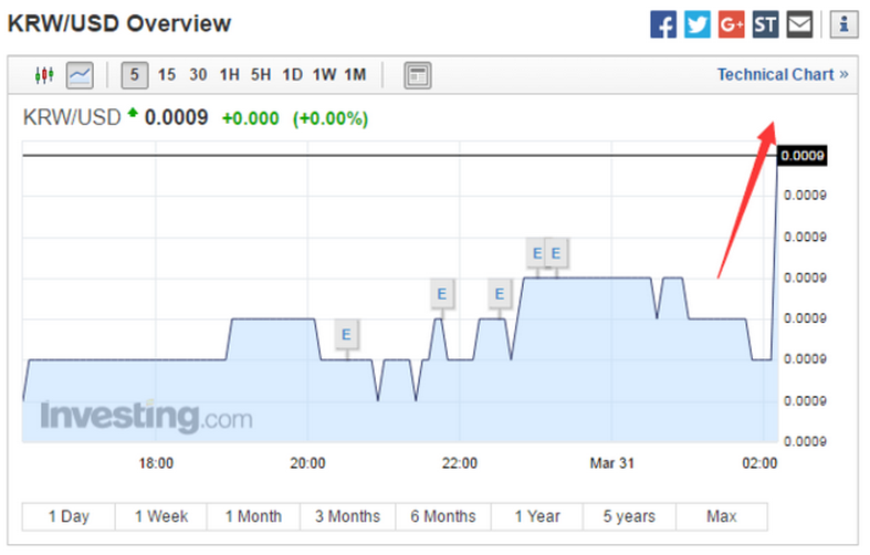 韩元兑美元从日低1118.93急涨,暂报1117.40韩元。